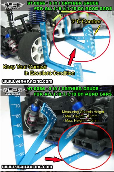 MISURATORE CAMBER BLU 1/10 ED ALTEZZA TELAIO IN METALLO – GPEDYT-0056BU