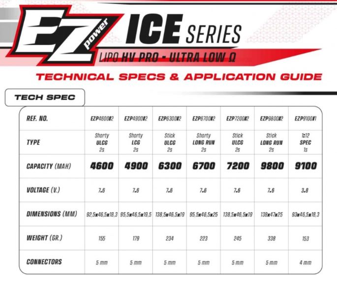 LiPo Shorty 2s 7,4v 4900 ULCG 140/70C ice series 179gr 95,5×46,5×19,5mm – TXXEZP4900-2S