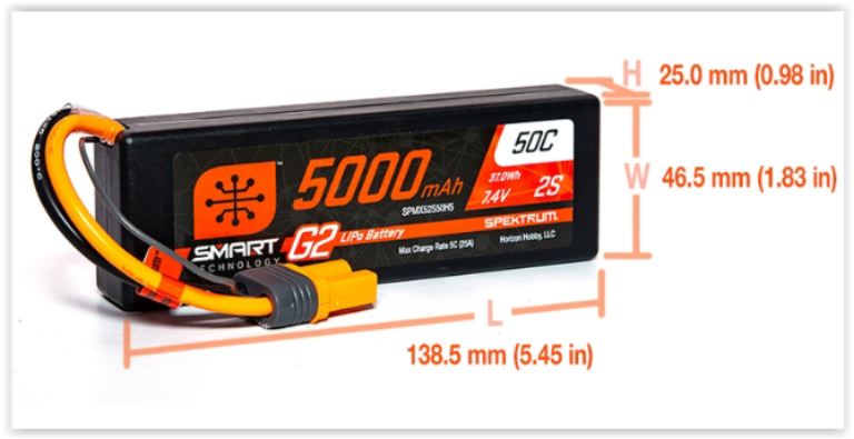 LiPo 7,4v 5000mAh 50C smart G2 connettore IC5/EC5 + adattataore IC3/EC3 – HORSPMX52S5H5