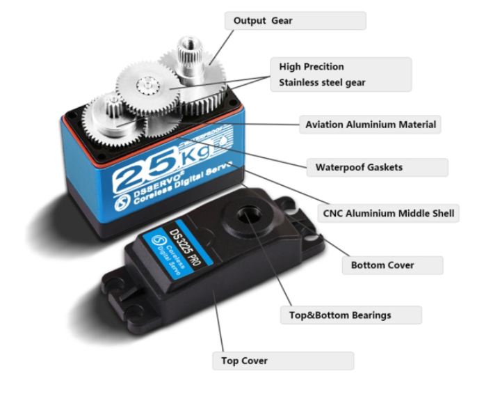 Servo DS3218 PRO 23,5kg/0,1sec @6,8V waterproof IP66 ingranaggi acciaio – RBT-DS005
