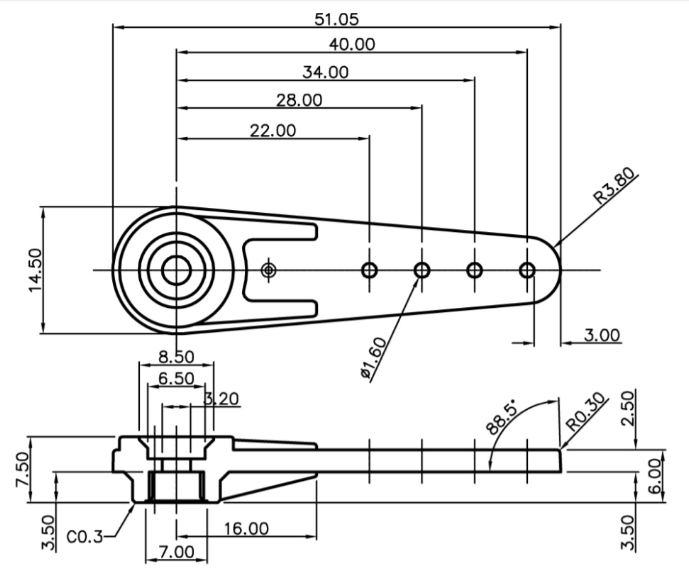 Squadrette servo lunghe 51mm 25T Futaba 4pz – GRA7907-2