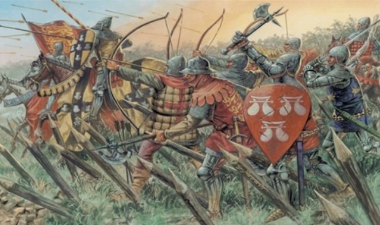 Il 25 ottobre 1415, nei pressi di Agincourt, l’esercito Inglese di Enrico V, costituito per lo più da truppe appiedate e da un ridotto contingente di cavalieri nobili, sconfisse l’armata del conestabile di Francia di Charles d’Albret, ben più numerosa e con la migliore cavalleria pesante d’Europa. Il successo degli inglesi è dovuto all’impiego dell’arco lungo gallese (longbow), di facile impiego, anche con un minimo addestramento, ma in grado di colpire a 200 metri di distanza e di penetrare anche le armature della cavalleria.
