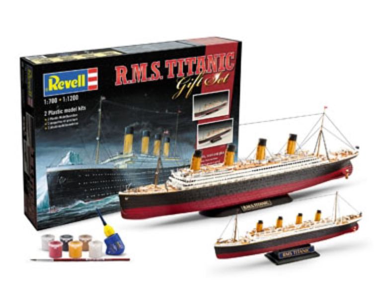 A Gift Set with two models of the R.M.S. Titanic in scales 1:700 and 1:1200. Adhesives and paint are included in addition to six basic colours.