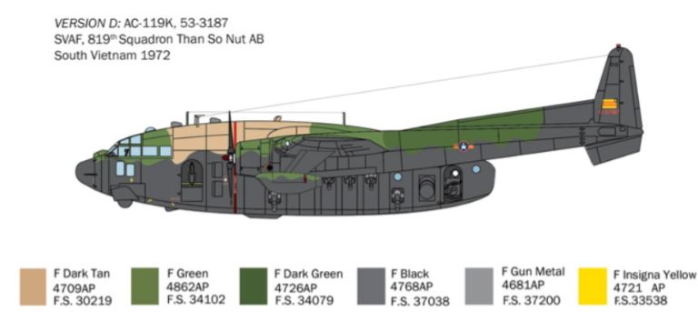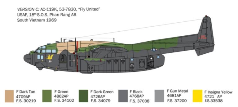 Laereo da trasporto pesante Fairchild C-119 azionato da due motori radiali, venne usato dalla U.S. Air Force come base per la conversione «cannoniera volante». Queste conversioni particolari sono state costruite in un numero limitato per luso contro le strade di supporto e concentrazioni truppe dei Vietcong durante la guerra del Vietnam. La versione AC-119 K, armata con 2 cannoni da 20mm e 4 mitragliatrici da 7,62mm, aveva molto successo nelle incursioni notturne contro gli autocarri. Unaltra versione, il tipo AC-119 G, si differiva per larmamento più leggero. Questi aerei avevano 2 motori a reazione addizionali per agevolare il decollo da piste naturali quando erano carichi di munizioni. Con l’entrata in servizio del più potente AC-130H questi aeroplani furono progressivamente ceduti alle forze aeree del Vietnam del Sud che li utilizzò fino alla caduta del governo di Saigon.