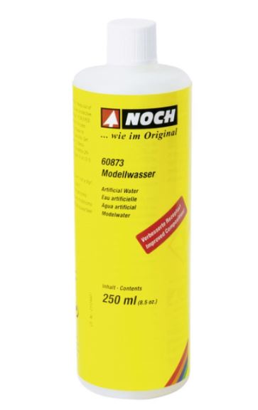 Il design dei corsi d’acqua è uno degli argomenti più impegnativi nel campo del modellismo paesaggistico. NOCH ha sviluppato tre nuovi prodotti per l’acqua per aiutarvi a ottenere i migliori risultati nel modo più semplice e veloce possibile. I miglioramenti e le innovazioni sono nei dettagli: ad esempio, tutti e tre i nuovi prodotti per il 2018 si basano completamente sull’acqua (reale)! Questo non è solo un bene per l’ambiente, ma si può anche lavorare su qualsiasi superficie, anche sul polistirolo. E dopo l’uso, l’utensile può essere facilmente pulito con acqua. L’acqua modello è particolarmente adatta per creare livelli d’acqua su stagni, laghi e ruscelli. Applicazione: Dipingere il letto di un ruscello o di un lago con vernice a base d’acqua o vernice acrilica e lasciare asciugare bene. Più scuro è il colore, più profonda appare l’acqua. Dopo che la vernice si è asciugata, versare l’acqua del modello in un unico getto di circa 2 – 3 mm di altezza. Tempo di asciugatura circa 24 ore. Durante l’indurimento, l’acqua del modello perde circa il 50% del suo volume, con il risultato di un livello d’acqua di 1 -1,5 mm. Importante: Si sconsiglia di effettuare ulteriori infusioni in quanto ciò potrebbe causare l’intorbidamento dello strato d’acqua più basso!