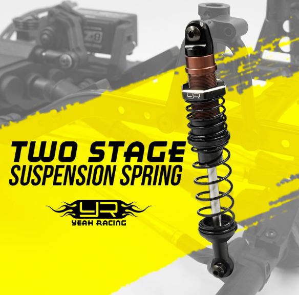 Con la doppia molla, puoi utilizzare una molla morbida e una dura per avere una corsa finale rigida sul tuo ammortizzatore per controllare il tuo modello in modo che rimanga in posizione verticale e non si capovolga!