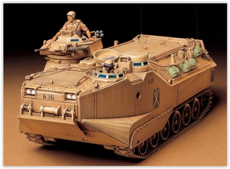 Fedele riproduzione in scatola di montaggio scala 1:35 del veicolo anfibio AAVP7A, adibito al trasporto truppe Americane. Il modello dispone di torretta e mitragliatrice MK19. Realizzato in edizione limitata include figura del comandante.