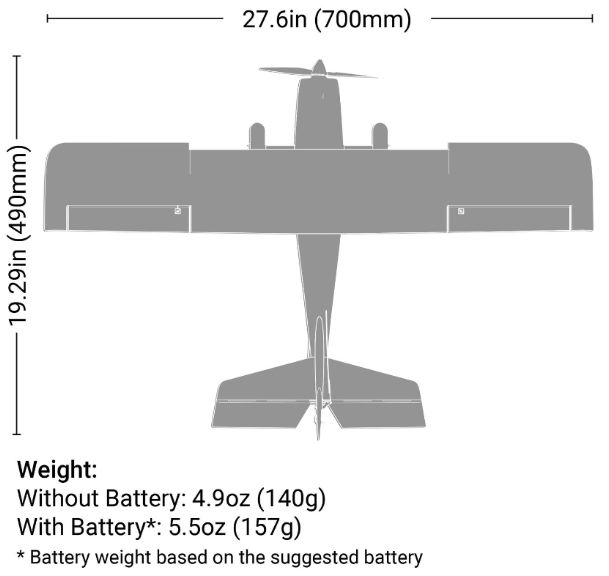 La versione Ready-To-Fly (RTF) include tutto il necessario per volare in una sola confezione ed è una scelta perfetta se siete nuovi piloti RC. Dal controller/ricevitore Spektrum SLT6 2.4GHz che potete usare con altri aerei Bind-N-Fly® (BNF) Basic compatibili con la tecnologia SLT FHSS (disponibilità futura), alla batteria LiPo ricaricabile 2S 300mAh e a un comodo caricatore USB-C che può essere utilizzato con varie fonti di alimentazione USB, non c’è nulla di extra da acquistare! È disponibile anche una versione BNF Basic per piloti esperti che vogliono utilizzare il proprio trasmettitore Spektrum preferito insieme a batterie e caricabatterie che potrebbero già possedere. E per entrambe le versioni, il potente e efficiente motore brushless, l’ESC, il ricevitore dual-protocol (DSMX/DSM2 e SLT FHSS) e i servi sono tutti installati in fabbrica nel resistente telaio in EPO che è quasi pronto a volare direttamente fuori dalla scatola. Basta installare l’ala usando le viti a pomello incluse e potrete volare in pochi minuti non servono colla o attrezzi!