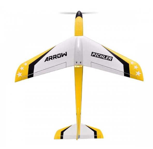 I tempi frenetici stanno di nuovo scoppiando! Voli mozzafiato ad alta velocità o lenti fly-by e atterraggi Tu come pilota determini il ritmo e, naturalmente, il fattore divertimento ad esso associato. Il modello è stato completamente sviluppato da Pichler e vola letteralmente come su rotaie. Attenzione: Arrow crea dipendenza! Il modello è controllato da elevatore e alettoni e può essere pilotato da chiunque possa avviare e far atterrare in sicurezza un addestratore di alettoni. Sebbene l’Arrow possa volare molto velocemente, è facile da controllare in qualsiasi situazione di volo. Può essere facilmente lanciato a mano e atterrato a un ritmo lento.