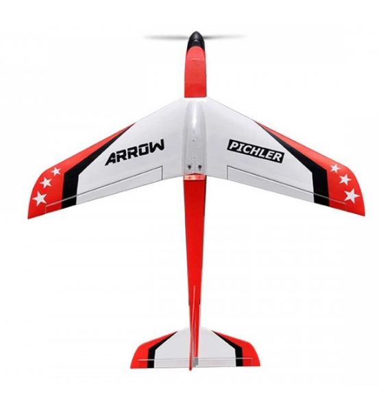 I tempi frenetici stanno di nuovo scoppiando! Voli mozzafiato ad alta velocità o lenti fly-by e atterraggi Tu come pilota determini il ritmo e, naturalmente, il fattore divertimento ad esso associato. Il modello è stato completamente sviluppato da Pichler e vola letteralmente come su rotaie. Attenzione: Arrow crea dipendenza! Il modello è controllato da elevatore e alettoni e può essere pilotato da chiunque possa avviare e far atterrare in sicurezza un addestratore di alettoni. Sebbene l’Arrow possa volare molto velocemente, è facile da controllare in qualsiasi situazione di volo. Può essere facilmente lanciato a mano e atterrato a un ritmo lento.