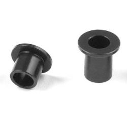 Molded composite steering block of hard hardness (H) for foam-tire racing. The steering block features two Ackermann positions, and uses small but robust 5×10 ball-bearings to minimize unsprung weight. Can be also used for rubber tires. Fits XRAY T2, T3 cars.