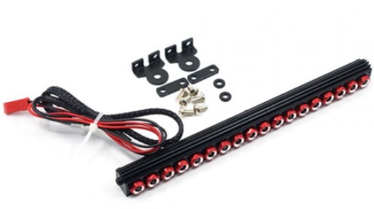 Barra nera e rossa in alluminio con 18 LED bianchi.