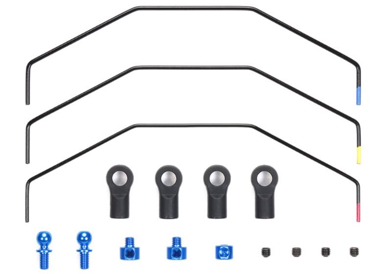 Il set è composto da tre aste: morbida (rossa), media (gialla) e dura (blu). Riduce il rollio e stabilizza il modello in curva.