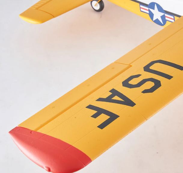 Due schemi di verniciatura: sia che tu voglia simulare lo stile realistico di un aereo da pattuglia o l’atmosfera casual di una versione civile, abbiamo quello che fa per te. Colori accattivanti, punte delle ali rosse e punte dell’elica gialle, assicurano una chiara visibilità nel cielo.