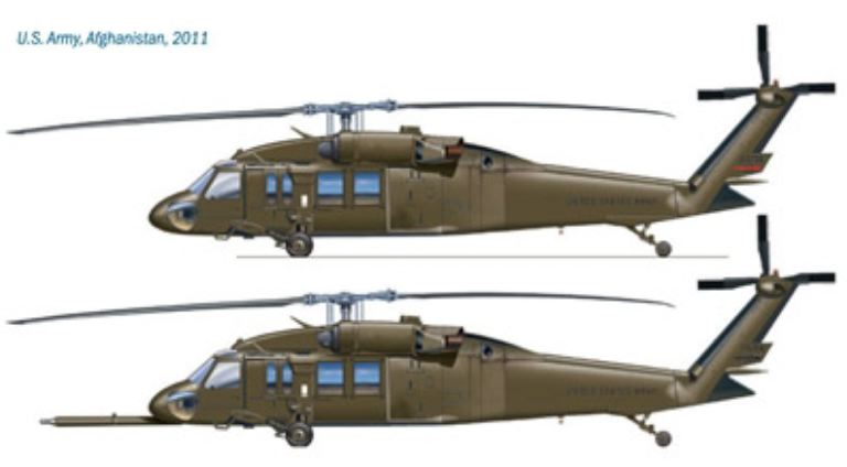 Il Black Hawk è un elicottero dai molteplici impieghi utilizzato in prima linea dall’ Esercito per assalto aereo, cavalleria del cielo, soccorso medico ed unità di evacuazione. Venne progettato per portare sull’ obbiettivo 11 soldati delle truppe d’assalto, completi di armamento pesante, ed è inoltre in grado di trasportare un obice da 105 mm. completo di 30 proiettili. Il Black Hawk venne utilizzato per la prima volta nel 1978, la sua tecnologia avanzata ne facilita la manutenzione sul campo. Il Black Hawk si è comportato egregiamente in numerose missioni sia di combattimento che di evacuazione, di cui ultimamente le più importanti sono state l’ Operazione Enduring Freedom in Afghanistan e l’ Operazione Iraqi Freedom in Iraq. In aggiunta, versioni modificate del Black Hawk hanno operato come piattaforme per operazioni speciali.