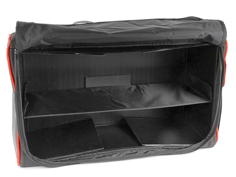 La borsa per il trasporto è realizzata in materiale resistente e di alta qualità. All’interno la borsa è rinforzata con un inserto in plastica e divisa in due zone con un piano intermedio. Grazie al suo utilizzo, è facile da pulire e gli oli non hanno alcuna possibilità di penetrare all’esterno. Sul lato destro, la borsa ha anche uno scomparto più piccolo con patta in velcro. Può essere trasportato utilizzando la pratica tracolla o la maniglia di trasporto sulla parte superiore.