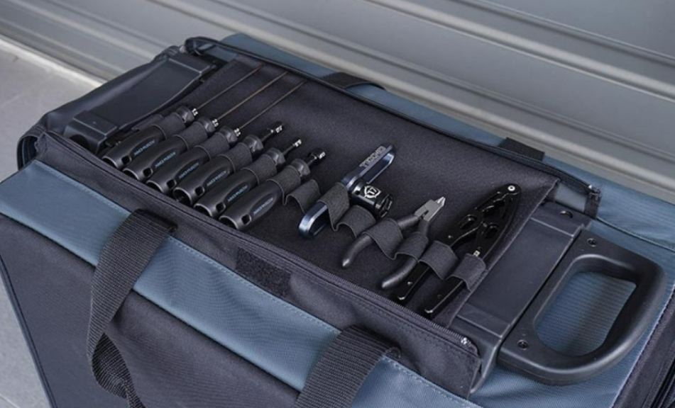 2 tasche laterali con zip incluse per riporre parti e accessori