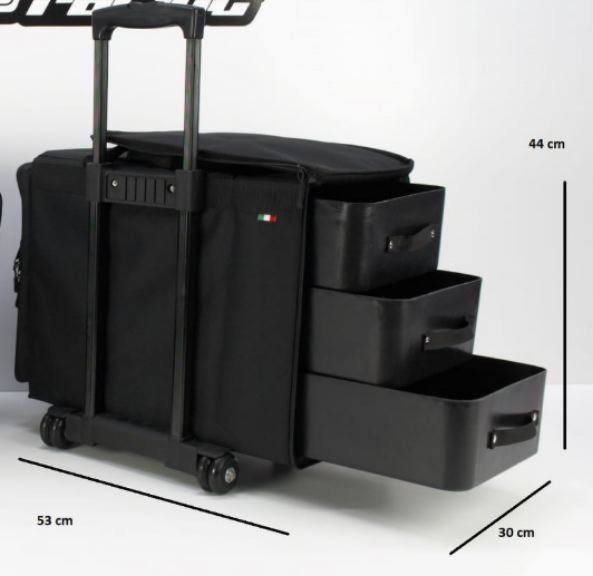 Bag Trolley è una borsa con tre cassetti in plastica rigida dove puo contenere il tuo modello e tutti gli accessori che servono.