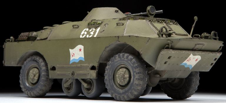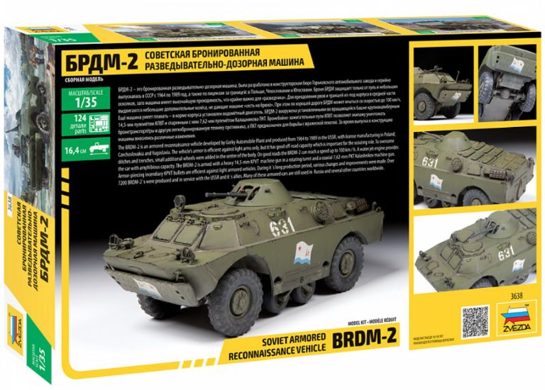 Il BRDM-2 è un veicolo corazzato da ricognizione sviluppato da Gorky Automobile Plant e prodotto dal 1964 al 1989 in URSS, con produzione su licenza in Polonia, Cecoslovacchia e Jugoslavia. L’armatura del veicolo è efficiente solo contro le armi leggere, ma ha una buona capacità fuoristrada che è importante per il ruolo di scouting. Per superare fossati e trincee, sono state aggiunte piccole ruote aggiuntive al centro del corpo. Su buone strade il BRDM-2 può raggiungere una velocità fino a 100 km / h. Un motore a getto d’acqua fornisce all’auto capacità anfibia. Il BRDM-2 è armato con una mitragliatrice KPVT pesante da 14,5 mm in una torretta rotante e una mitragliatrice PKT Kalashnikov coassiale da 7,62 mm. I proiettili KPVT incendiari perforanti sono efficaci contro i veicoli blindati leggeri. Durante il lungo periodo di produzione, sono state apportate varie modifiche e miglioramenti. Oltre 7200 BRDM-2 sono stati prodotti e in servizio con l’URSS e suoi alleati. Molte di queste auto blindate sono ancora utilizzate in Russia e in molti altri paesi in tutto il mondo.
