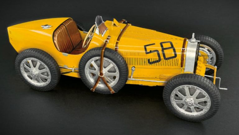 La Bugatti Type 35 è tra le più iconiche e significative vetture della Storia dellautomobilismo sportivo. Capolavoro di Ettore Bugatti è un eccellente mix di competenze ingegneristiche, design, eleganza, leggerezza e velocità. Prodotta durante gli anni 20 conquistò nelle competizioni su strada e su pista un numero incredibile di vittorie. Venne infatti specificatamente progettata per il mondo delle competizioni con lintroduzione di soluzioni tecniche e meccaniche che la rendevano ideale per i circuiti dellepoca. Tra le vittorie del suo Palmares la Targa Florio del 29 e il Gran Premio di Monaco del 1930. Si caratterizzava, da un punto di vista estetico, per linconfondibile forma del radiatore a ferro di cavallo, marchio di fabbrica della casa automobilistica Bugatti. Grazie al suo motore di 8 cilindri da 2.263 cm3, associato ad un cambio meccanico a quattro rapporti, ed equipaggiato con compressore volumetrico, la Bugatti Type 35 era in grado di raggiungere la velocità massima di 210 Km/h.