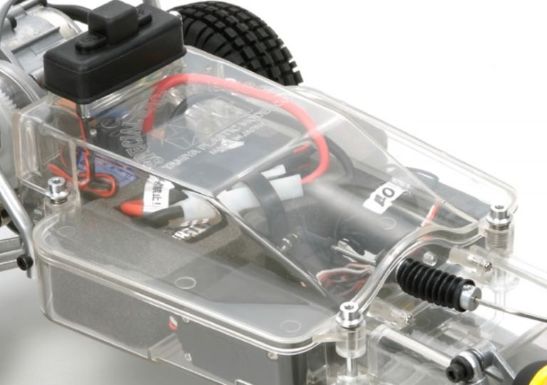 Il Buggy Champ è inoltre dotato di una scatola dellimpianto R/C trasparente che protegge lelettronica e la batteria. E dotato di pneumatici anteriori e posteriori scanalati con battistrada a blocchi.