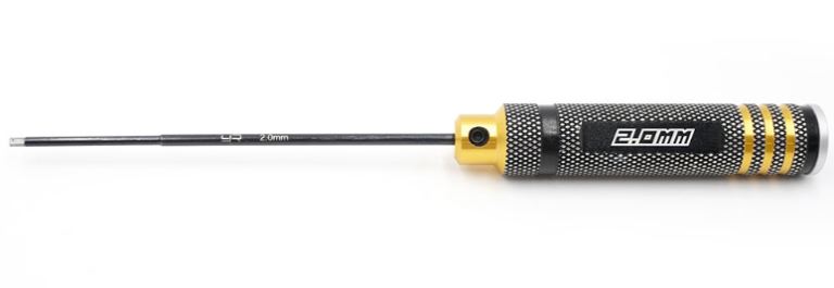 Cacciavite a brugola da 2,0mm con manico in metallo nero ed oro.