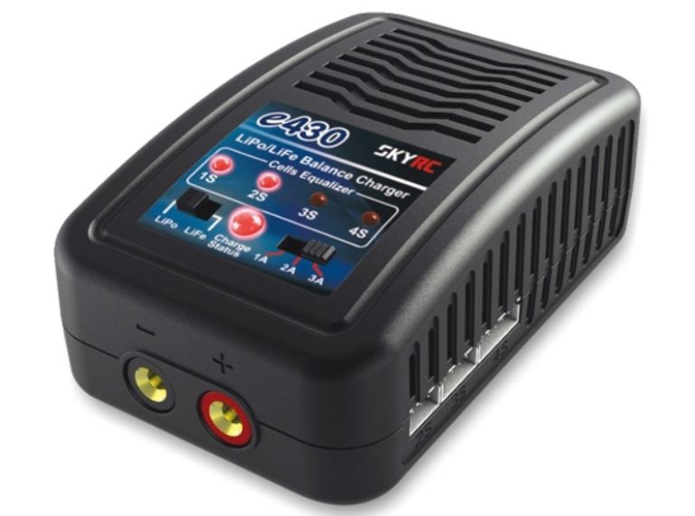 Lo SkyRC e430 è un caricabatterie di alta qualità per la ricarica di batterie LiPo e LiFe da 2 a 4 celle. La potenza di carica massima è di 30W e la corrente di carica massima è fino a 3A. Il tipo di batteria e la corrente di carica possono essere impostati tramite interruttori a slitta.