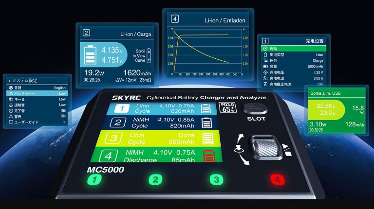 Con il supporto per oltre 44 formati e più di 10 tipi di chimica inclusa l’emergente tecnologia agli ioni di sodio (Na-ion) l’MC5000 si adatta facilmente alle tue esigenze. I quattro slot di ricarica indipendenti, ciascuno in grado di fornire fino a 5A di corrente di carica e 2A di corrente di scarica, garantiscono una gestione dell’energia rapida ed efficiente.