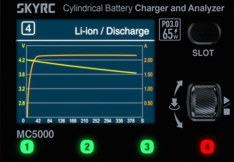 Quattro slot indipendenti con fino a 5A di corrente di carica e 2A di corrente di scarica per slot