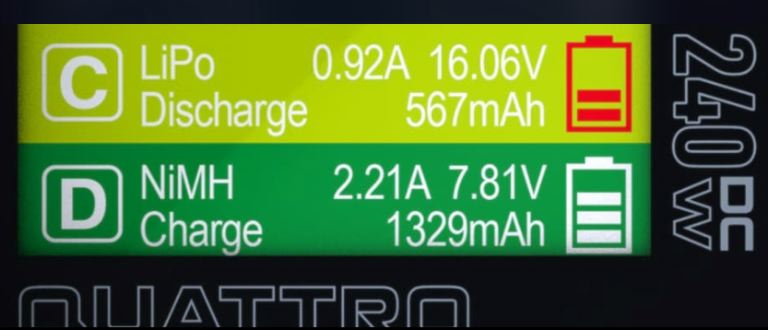 Ognuna delle quattro uscite funziona in modo indipendente, consentendo di caricare contemporaneamente diversi tipi di batterie. Da LiPo e LiHV a NiMH, NiCd, LiFe, Li-ion e Pb, il Q100neo è un vero tuttofare.