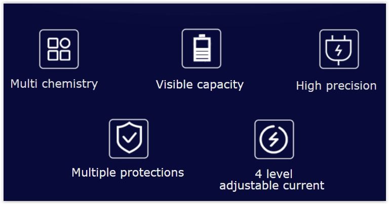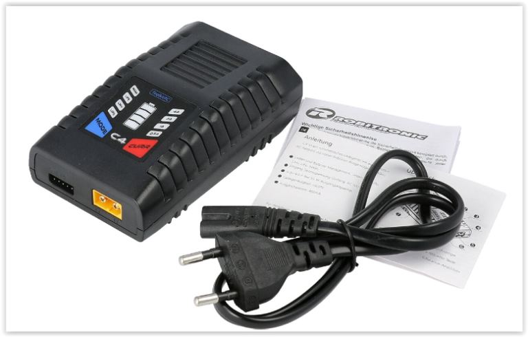 Il caricabatterie C4 è un caricabatterie piccolo e facile da usare per batterie al litio e al nichel con una varietà di funzioni protettive per una ricarica sicura.