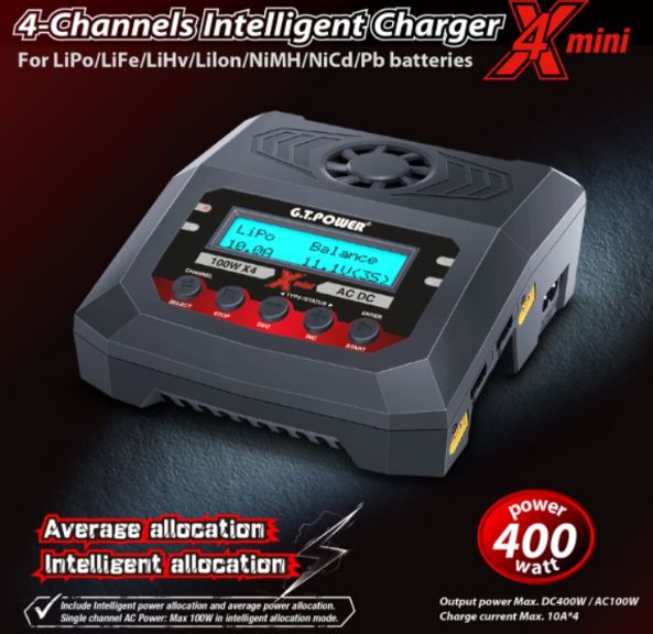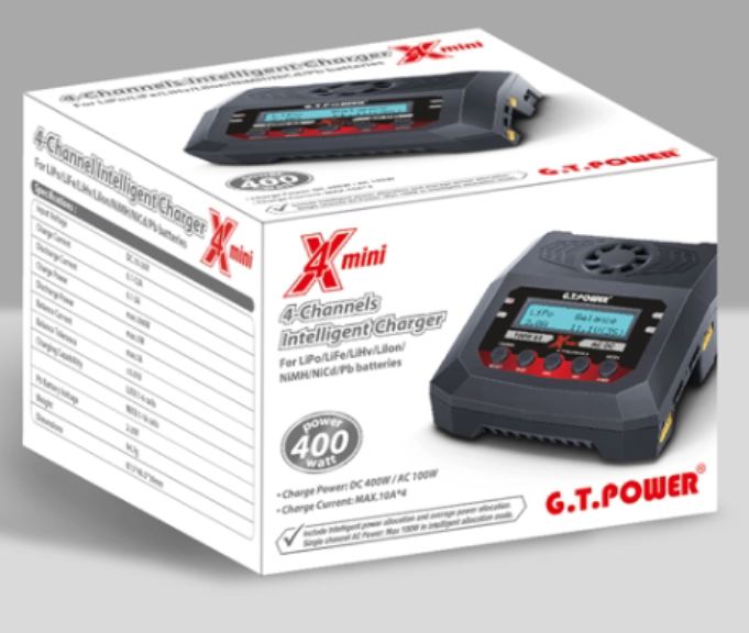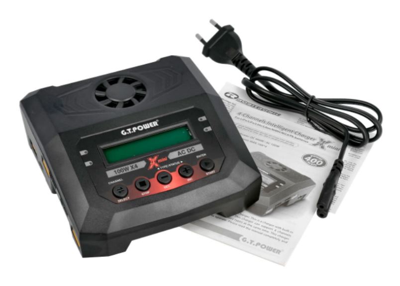 Piccolo, maneggevole e quadruplo potente. Il mini caricatore X4 offre quattro porte per la ricarica rapida di varie batterie. Grazie a questi quattro circuiti, è possibile caricare quattro batterie indipendentemente l’una dall’altra contemporaneamente, indipendentemente dal fatto che si tratti di una batteria LiPo, NiMH o Pb. Con il potente circuito da 100 W per canale, è possibile collegare fino a 4S (batterie al litio) e 8 celle (batterie al nichel) al mini caricatore X4.