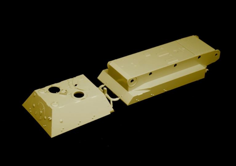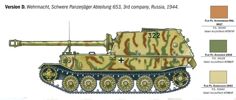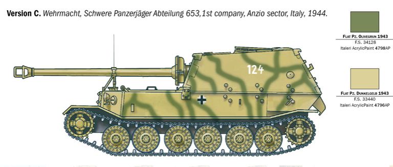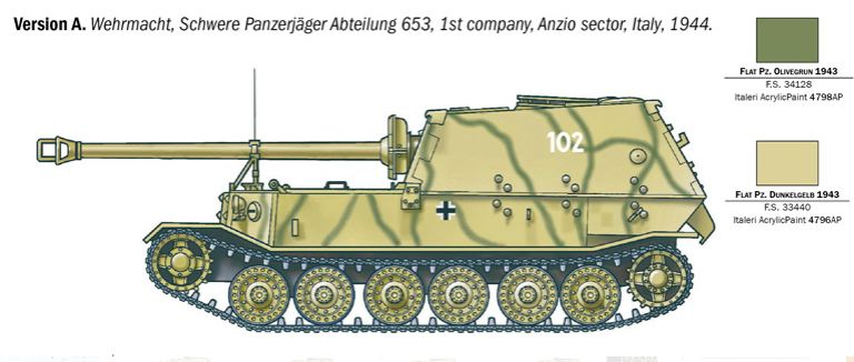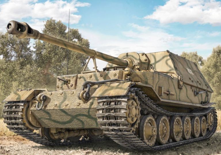 Il cacciacarri pesante Elefant venne sviluppato nel corso della Seconda Guerra Mondiale per le aliquote controcarro della Wehrmacht. I primi esemplari prodotti vennero realizzati utilizzando lo scafo VK 45.01 (P) e vennero denominati Ferdinand in onore del celebre progettista Ferdinand Porsche. Pesantemente corazzati ed armati con il potente cannone da 88 mm. in grado di distruggere i carri avversari a grande distanza, fecero il loro debutto nella battaglia di Kursk, il più grande scontro tra mezzi corazzati della Storia. La struttura del carro aveva però dei limiti di mobilità, velocità ed affidabilità tecnica che ne condizionarono le prestazioni a Kursk. I Ferdinand ancora in servizio ed operativi alla fine del 1943 vennero riconvertiti con migliorie e modifiche al nuovo standard con il nome definitivo di Elefant.