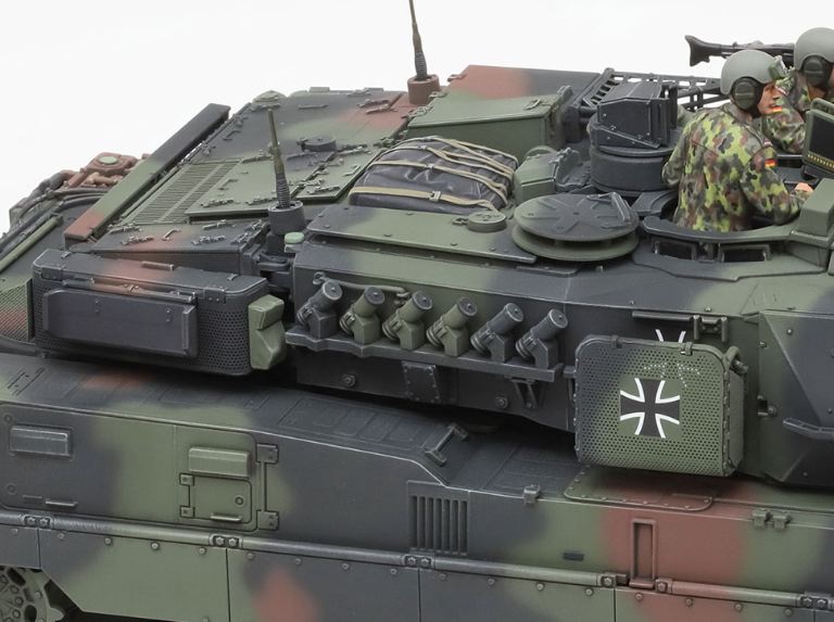 Il potente modello Leopard 2 A7V con fari quadrati, corazza aggiuntiva anteriore e torretta aggiornata la forma della parte posteriore è riprodotta fedelmente sulla base di ricerche approfondite del carro reale.
