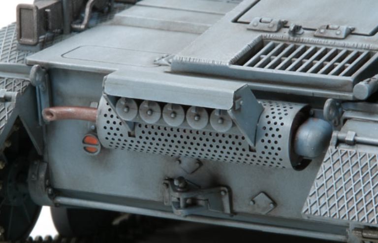 – Pannelli corazzati specifici per ogni variante inclusi. – L’assemblaggio delle parti aggiuntive della corazza è proprio come la costruzione del carro armato vero e proprio. – I portelli sullo scafo e sulla copertura sono ricreati con parti stampate separatamente. – Dettagli interni come la culatta del cannone, l’attacco della mitragliatrice e il mirino del cannone sono riprodotti in modo nitido. – Cingoli di tipo ad assemblaggio. – Parti fotoincise per la copertura della marmitta. – 1 figurino di comandante e 4 tipi di marcature inclusi.
