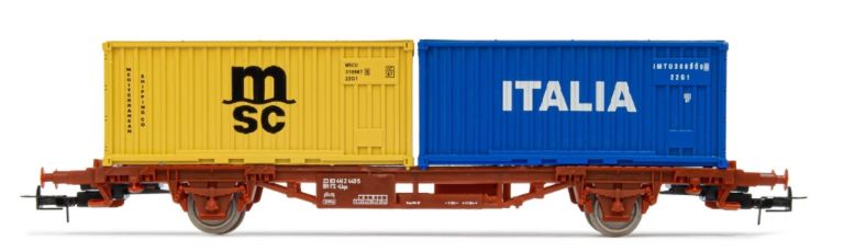 Carro pianale a 2 assi FS con 2 container da 20 epoca V H0 – LIMHL6111