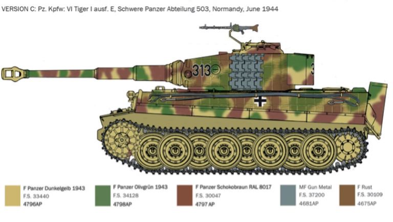 Il Panzerkampfwagen VI Ausf. Tiger I è certamente uno dei carri armati più famosi della Seconda Guerra Mondiale. Venne sviluppato per dotare le divisioni corazzate della Wehrmacht di un carro armato pesantemente corazzato e pesantemente armato da affiancare ai più diffusi carri medi Panzer III e Panzer IV non più in grado di contrastare efficacemente i carri avversari. L’armamento principale era costituto dal celebre e letale cannone anitcarro a canna lunga KwK 36 L/56 da 88 mm. Installato nella torretta e protetto da una pesante scudatura di 120 mm. era in grado di perforare, anche a lunga distanza, la corazza di qualsiasi mezzo nemico dell’epoca. Venne impiegato su tutti i principali teatri operativi e partecipò attivamente alle operazioni militari tedesche in Normandia e sul fronte occidentale. Sebbene condizionato da problemi di affidabilità e impiego, il carro pesante, nelle mani di equipaggi esperti, fu sempre estremamente temuto dalle forze alleate.