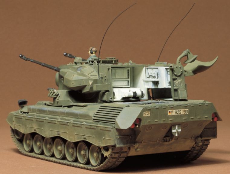 Kit di montaggio di un modello in plastica in scala 1/35 raffigurante il Gepard, un carro armato antiaereo del secondo dopoguerra gestito dalla Germania Ovest.