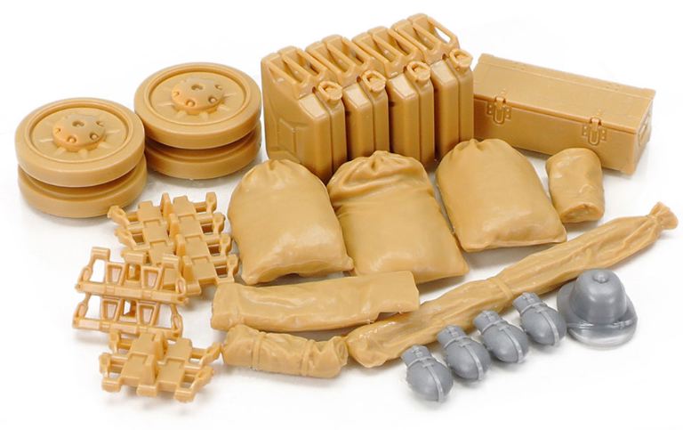 – Dispone di vari accessori come sacchi di sabbia, taniche e cingoli di scorta per ricreare una versione modificata vista sul fronte africano.