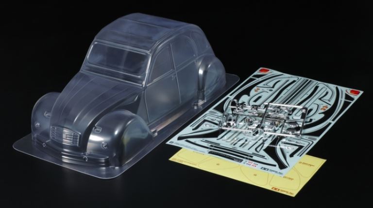 Carrozzeria trasparente della Citroën 2CV Charleston. Il set include set di sticker, nastro per mascheratura e specchietti laterali in plastica.