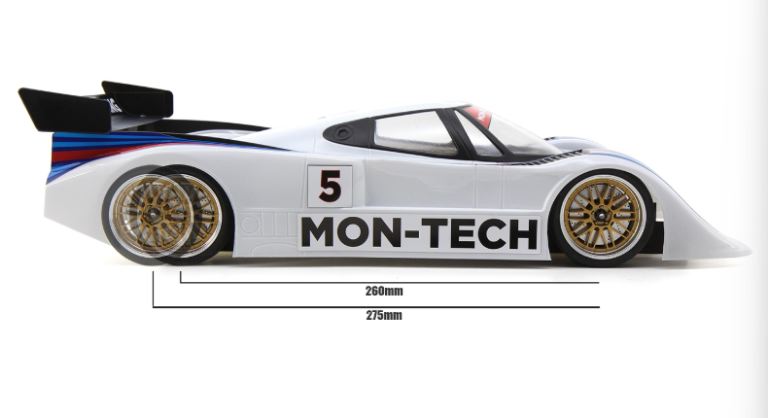La carrozzeria, in scala 1/10, ha una larghezza di 200 mm ed è compatibile con telai aventi passo da 260 o 275 mm.