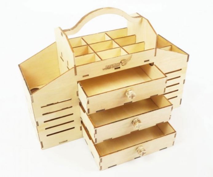 Kit di costruzione in legno tagliato al laser di una pratica cassetta per attrezzi e minuteria per il modellista. Tutti i componenti sono tagliati al laser e devono essere incollati solo con colla bianca o cianoacrilica. È allegato un manuale dettagliato e illustrato. Dati tecnici Materiali = compensato da 3 mm (taglio laser) Dimensioni (L x P x A) = 300 x 105 x 220mm Peso = 480g