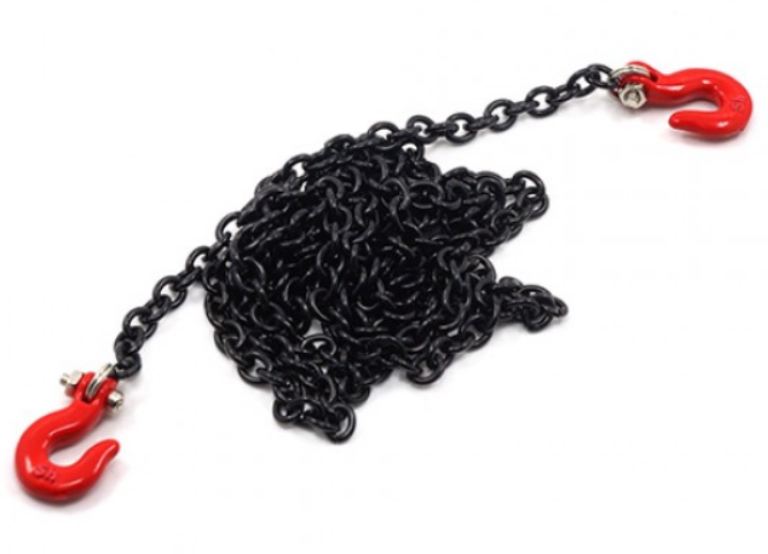Catena nera lunga 96cm con ganci rossi tutto in metallo per scaler in scala 1/10
