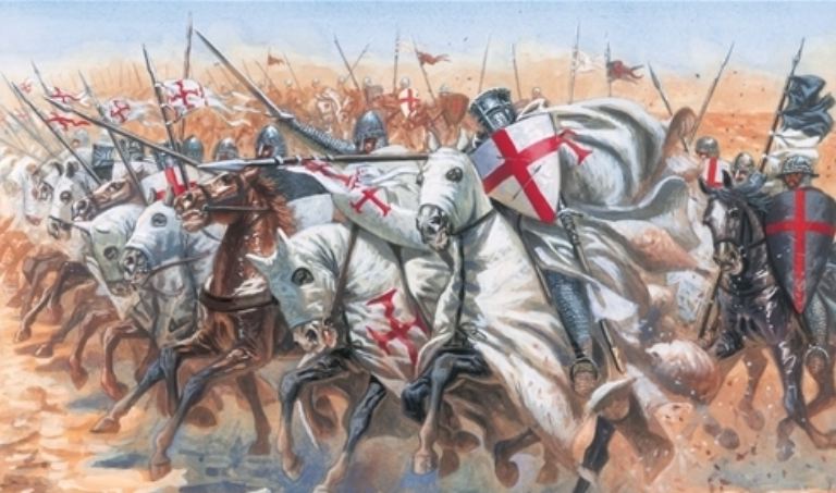La nascita del Cavalieri Templari, ordine monastico-miltare, è fatta risalire al 1139 per assicurare l’incolumità dei pellegrini che visitavano la Terra Santa dopo la sua conquista. I cavalieri si caratterizzavano per la veste bianca dei cistercensi sormontata da una croce rossa. La maggior parte dei cavalieri templari era equipaggiata come cavalleria pesante e poteva considerarsi una vere e propria forza d’elite dell’epoca.