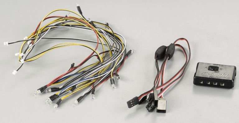 Le funzioni dei LED collegati sono i fari principali (bianco, blu), luci di stop (rosse), indicatori di direzione (arancione).