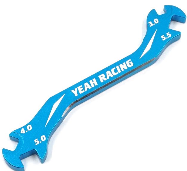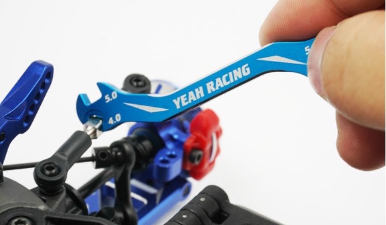 Chiave multiuso e multimisura per regolare camber e caster degli automodelli.