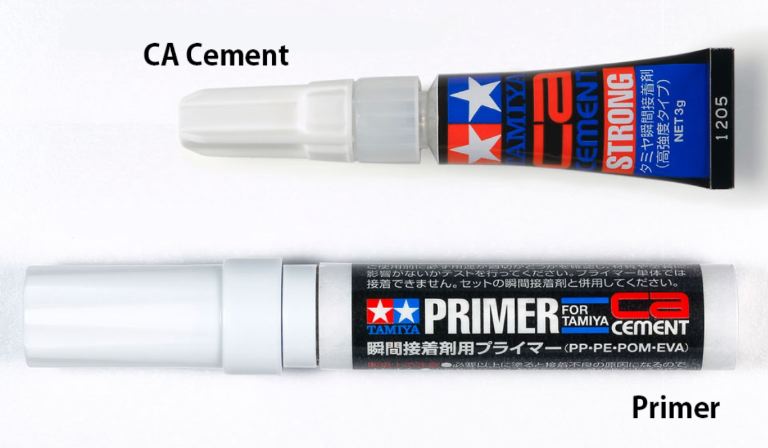 Tamiya è lieta di annunciare questo nuovo set di materiali di finitura che include larticolo 87139 (Tamiya CA Cement (Strong)) caratterizzato da una maggiore viscosità e Primer specifico e destinato alluso su materiali difficili da incollare come polipropilene (PP), polietilene (PE) e poliacetale (POM).