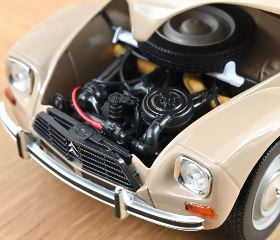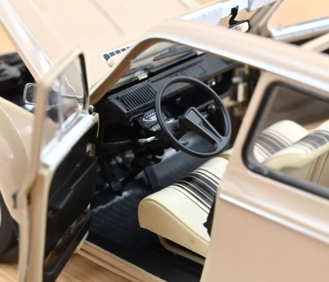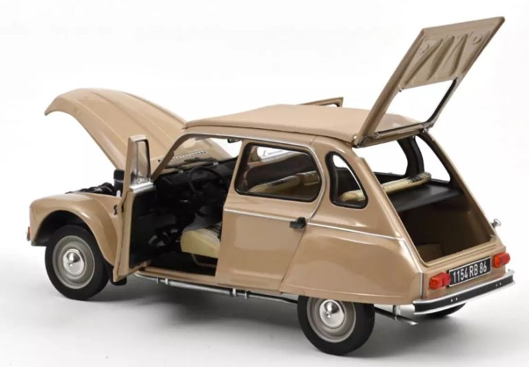 Nel 1964, le vendite dell’iconica Citroën 2 CV stavano diminuendo, superate dalla Renault 4. Citroën rispose creando la Dyane, utilizzando la linea di produzione della 2 CV per ridurre i costi. Se la Dyane avesse avuto successo, la 2 CV avrebbe potuto essere sostituita. Tuttavia, il nuovo modello doveva mantenere le dimensioni della 2 CV, in particolare in larghezza. Questo modello altamente dettagliato in scala 1:18 di Norev presenta quattro aperture funzionali: portellone posteriore, porte anteriori e cofano. Il motore da 602 cc con carburatore a doppio corpo e un sofisticato sistema di aspirazione è visibile sotto il cofano.