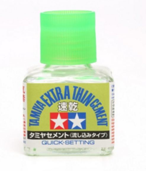 Il Tamiya Cement Extra Thin, grazie alla sua composizione, asciuga 4 volte più rapidamente dei comuni Cement evitando di dover mantenere il pezzo in posizione per lungo tempo. Il mini pennello consente un corretto dosaggio della colla. Confezione da 40ml.
