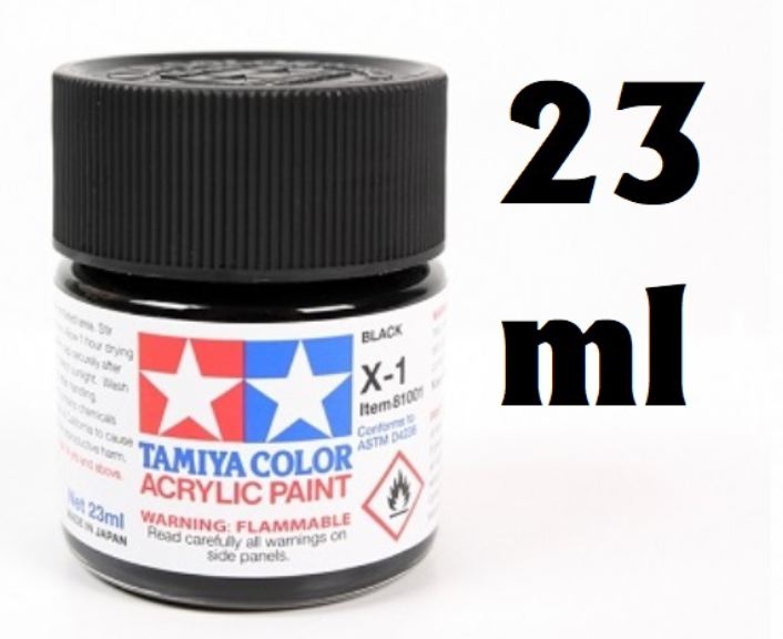I colori acrilici Tamiya sono realizzati con resine acriliche solubili in acqua e sono eccellenti sia per la stesura a pennello che per laerografo. Queste vernici possono essere utilizzate su resine stireniche, polistirolo, legno e tutti i comuni modelli di plastica. La vernice copre bene, scorre uniformemente e può essere facilmente sfumata. Prima dellindurimento, la vernice può essere lavata via con acqua semplice. Quando si esegue con laerografo, assicurarsi di utilizzare uno dei seguenti diluenti Tamiya: 81030, 81040, 81520. I colori X hanno una finitura lucida mentre i colori XF hanno una finitura opaca.